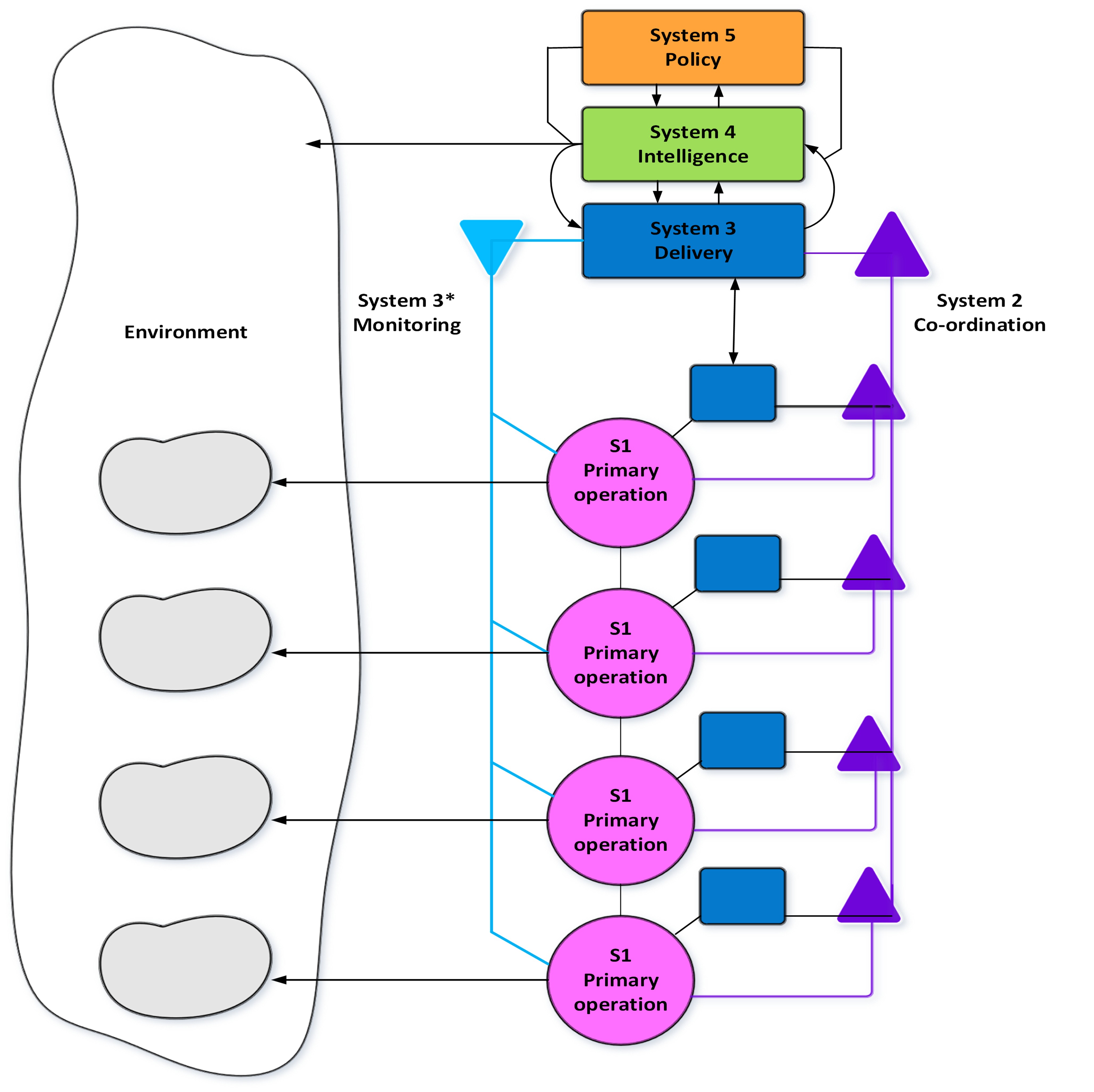 Firstly – I use the viable system model as a framework for inquiry, along with other systems thinking concepts/ ideas/approaches to get as full an understanding as possible of the complex situation we are exploring. This enables me to consider what moves towards improvement might be feasible next. It helps me to identify improvements or design things from scratch.